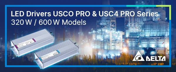 Delta LED Drivers USCO PRO and USC4 PRO Series New 320 W and 600 W Models for Harsh and Industrial Environments