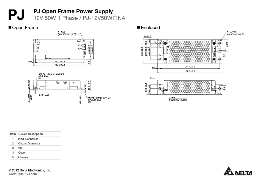 PJ-12V50WBNA, PJ-12V50WCNA, PJ-12V50WLNA