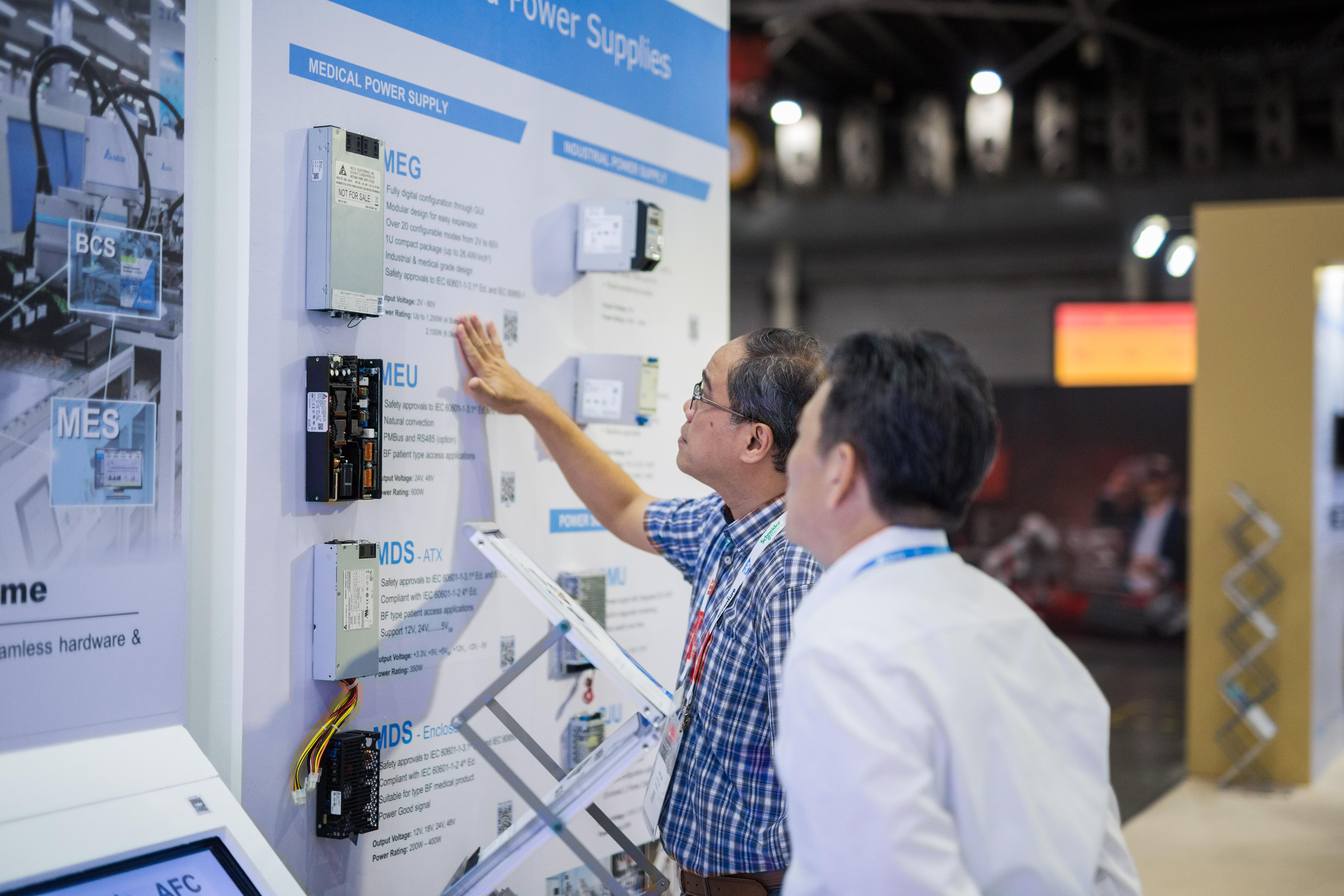 Delta presented medical and industrial power supplies including the MEG-A configurable power supply series which is designed for use in both medical and industrial applications. MEG-1K2A4 supports up to 4 isolated outputs for maximum 1.2kW, while the MEG-2K1A6 can accommodate 6 isolated outputs for maximum 2.1kW. These products can be configured for output voltages ranging from 2Vdc to 60Vdc.