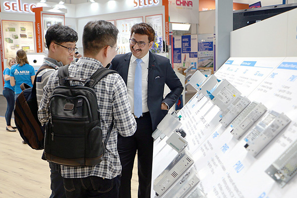 观众驻足台达工业电源供应器全家福展台了解咨询