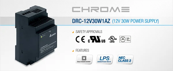 Chrome DIN Rail Power Supply Now Available in 30W with 12V Output Voltage