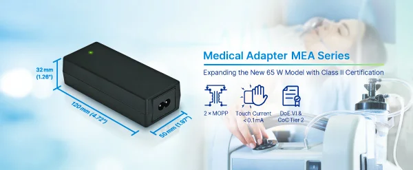 台达 MEA 系列医疗适配器新增 Class II 65 W 紧凑机型