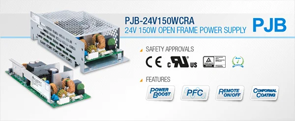 The PJB open frame power supply series now offers 150W output power with 24V output volta ...