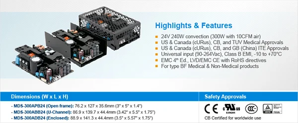 Delta Introduces 24V 300W 3" x 5" 1U Power Supply for Medical Applications