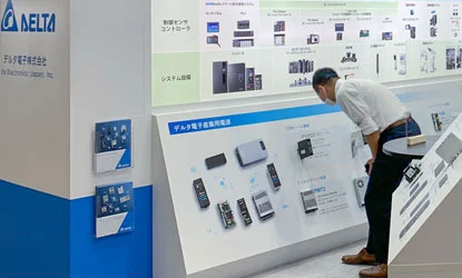 台達展區以可配置電源MEG系列為主軸。MEG可配置電源有三種模塊選擇:最高輸出300瓦的單插槽模塊、最高1200瓦輸出的三插槽及240瓦單插槽雙輸出模塊,適用於工業及醫療設備。可透過數位平台,調控2V至60V的輸出電壓。從網站上的可配置電源選型工具,可依照不同需求,配置最適合你的電源供應。