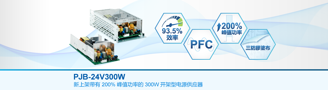 PJB系列PJB-24V300W可提供持續10秒的200% 峰值功率。這些保留的功率,可以提供如馬達、泵、致動器等機電負載可靠啟動,無需使用高價位的大功率、大尺寸的電源供應器。內置主動式PFC可達 0.99且滿足諧波電流IEC/EN 61000-3-2標准。其他特色包括低漏電流與低浪湧電流\電路板配備三防膠塗佈抗粉塵及化學污染物等。